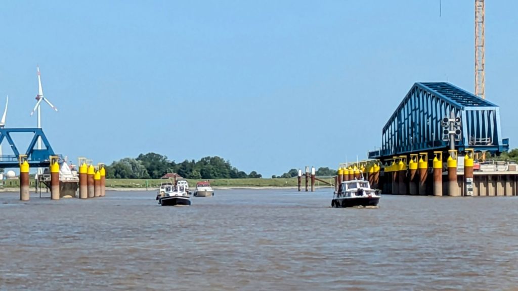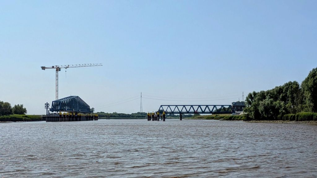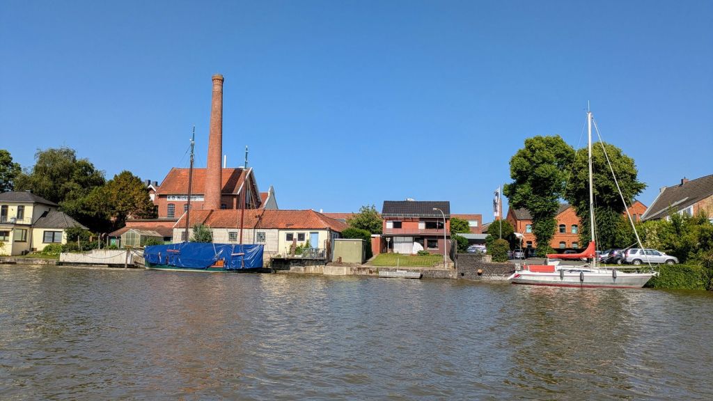 Hier schob der Flutstrom sehr kräftig mit und wir hatten Muße, den natürlichen Ufersaum beidseits zu betrachten. Gegen 11:20 passierten wir Weener sowie die dahinter in Bau befindliche Brücke und um 12.30 durften wir bereits gegen 4 € Gebühr in die Schleuse Papenburg einlaufen. Die Eisenbahnbrücke hielt uns aber nochmals 45 Mimin auf und um 13:40 hatten wir endlich die Liegeplätze erreicht.