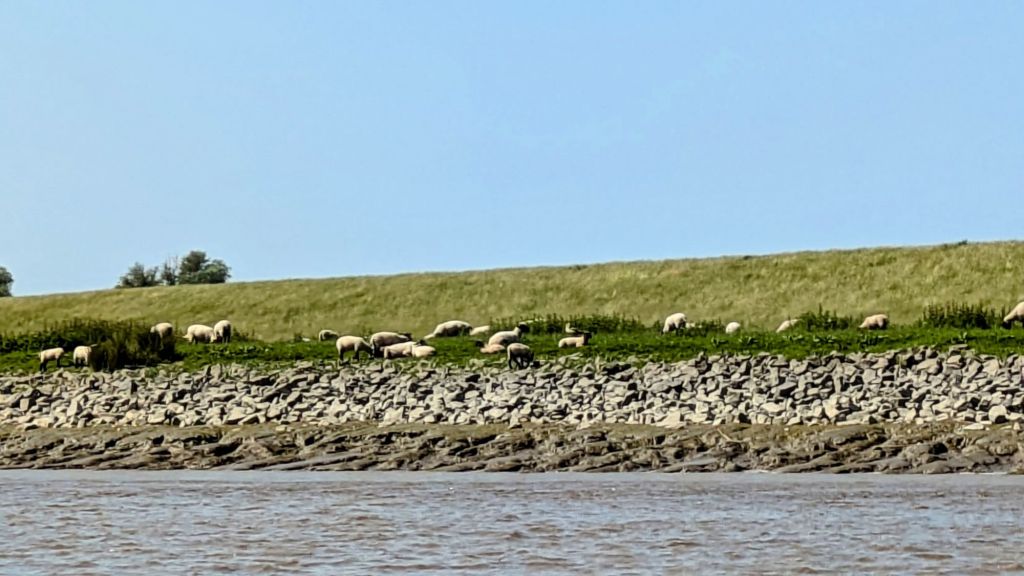 Dann erneuter Start und tatsächlich konnten wir gegen 10:30 aus der Schleuse in die Leda einlaufen. Nur kurz gegen kräftigen Flutstrom und schon bald waren wir wieder auf der Ems.