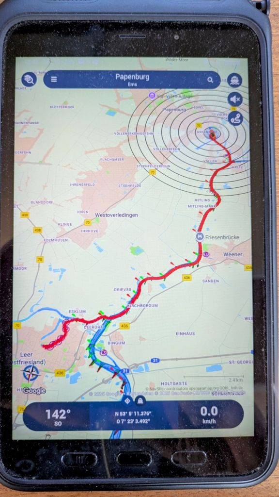 Sonntag werden wir um 14:00 die Schleuse nehmen mit Ziel Marinapark Emstal. Von dort werden wir dann über die Schleuse Dörpen in den Küstenkanal Richtung Oldenburg einlaufen.
