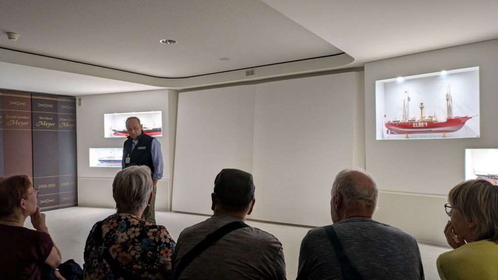 Für 13:15 hatte David eine Premium-Bustour zur Meyerwerft organisiert. Die dauerte insgesamt ca. 3 h war entspannt und sehr, sehr informativ. Prädikat Empfehlenswert.