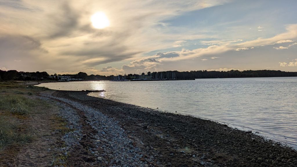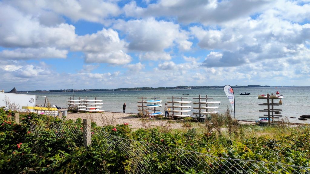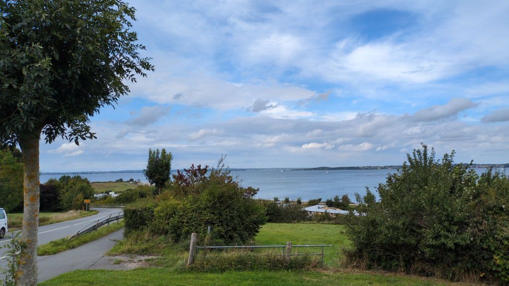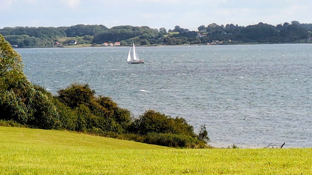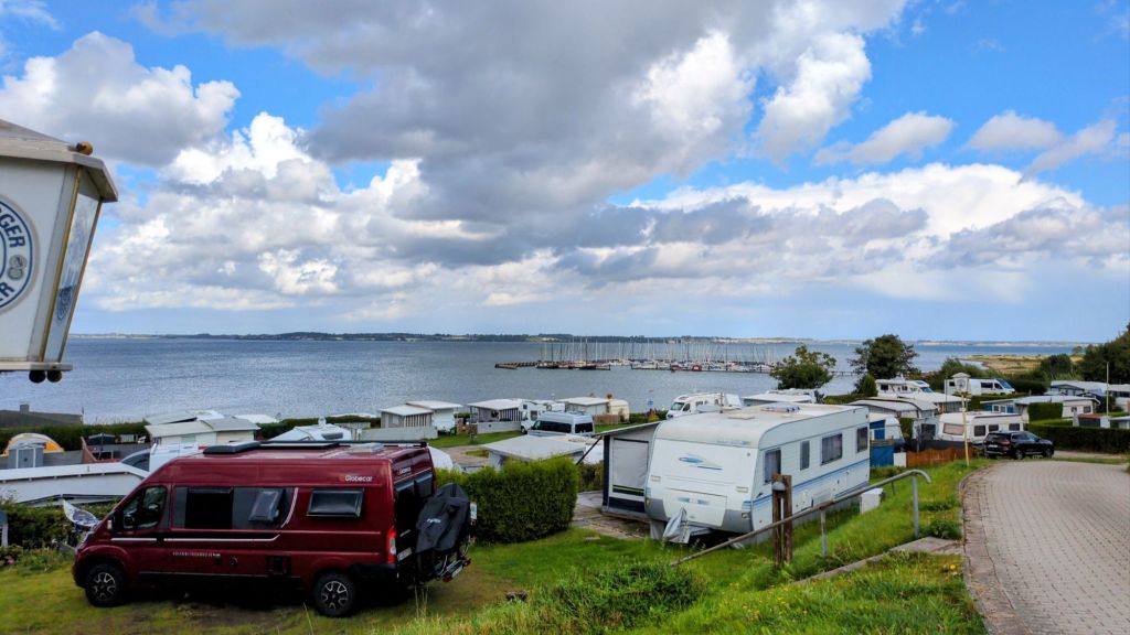 Von unserem Campingplatz können wir auf das andere Ufer der Förde schauen, nach Dänemark.