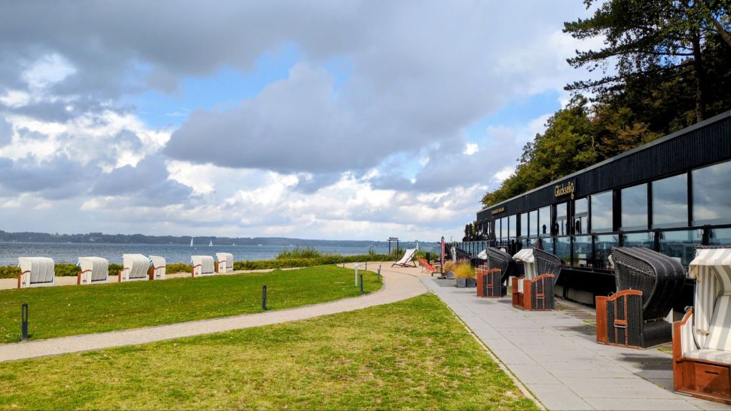 Durch schönen Waldweg vorbei am Glückselig Strandrestaurant (erst ab 14:00 geöffnet) zur Seebrücke Glücksburg, wo wir eine längere Rast in einem Lokal einlegten