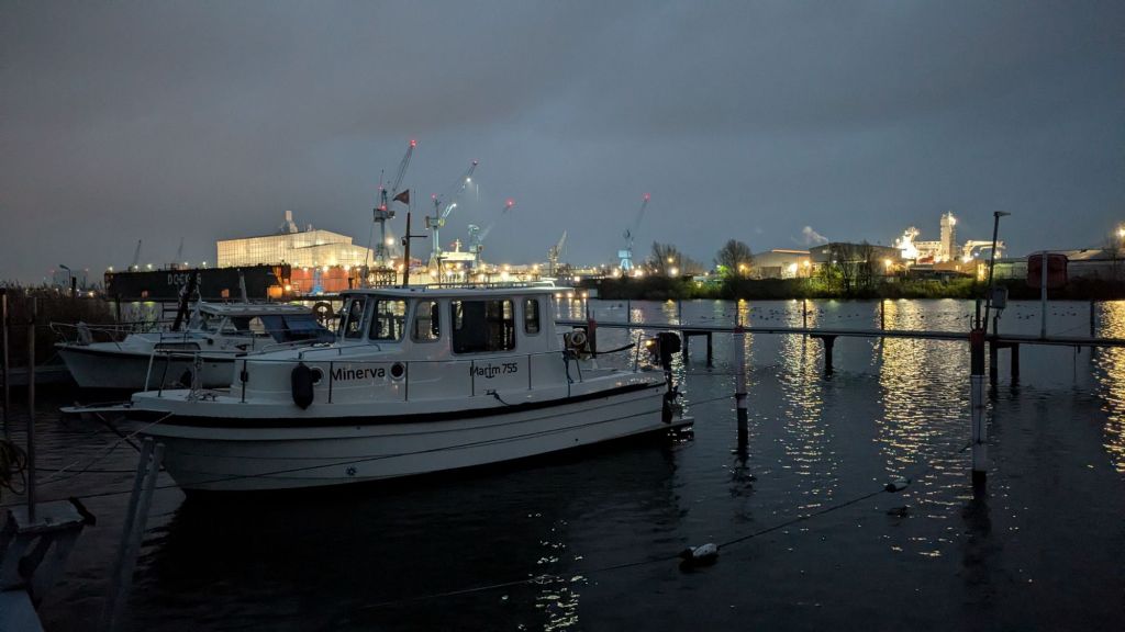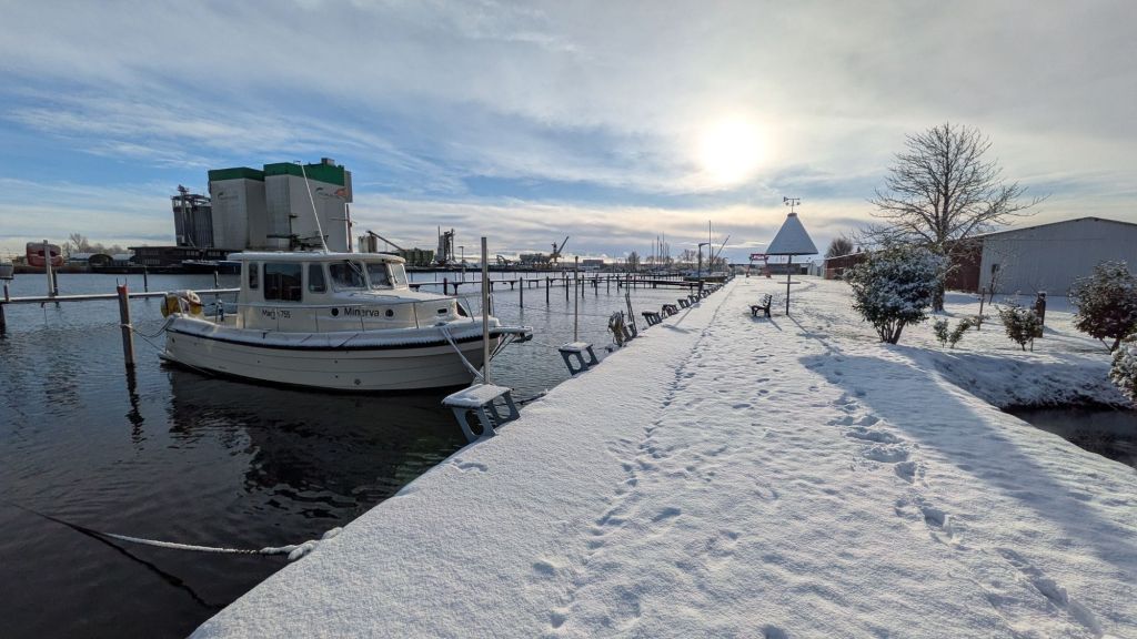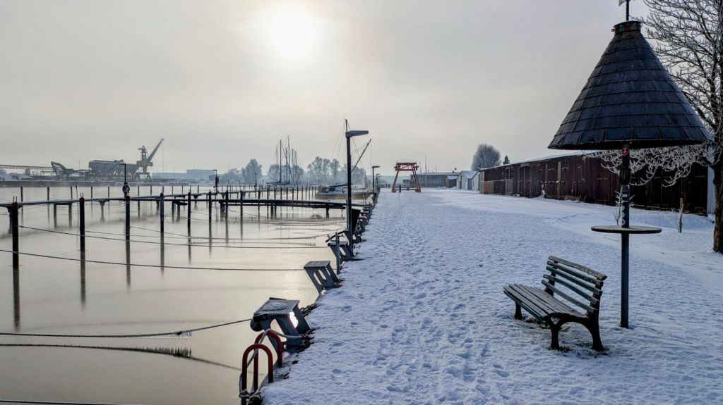 Seit Ende Januar hat sich am Liegeplatz meiner Swantje im Fischereihafen Bremerhaven (WVW e.V.) eine dünne Eisschicht gebildet.