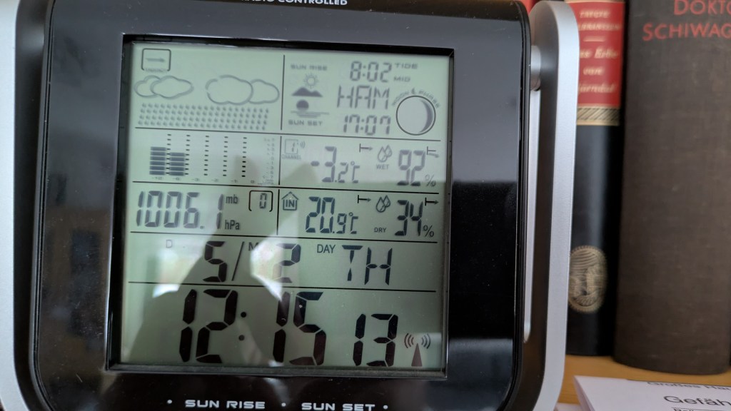 Bei Vorlauftemperatur von jetzt 45 Grad sind im Wohnzimmer 20,9 Grad, in der Küche 20,3 Grad , im Bad 23,3 Grad und auf dem Flur 19,3 Grad.