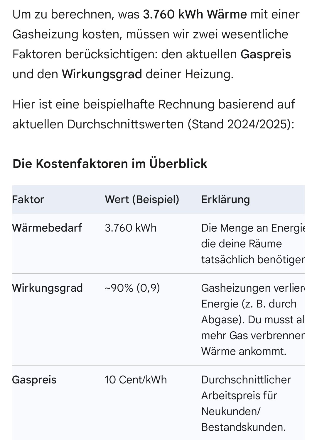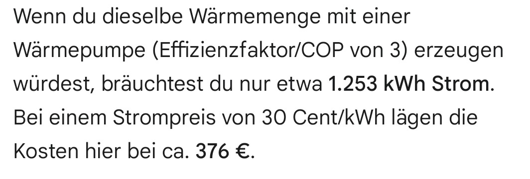 Erwähnenswert ist auch, dass der Gaspreis aufgrund der CO2-Abgaben mittelfristig stark steigen wird, der Betrieb der Gasnetze auf immer weniger Kunden umgelegt werden muss und die Gasversorgung uns international in starke Abhängigkeit bringt (erst Russland, jetzt USA und weitere Länder).