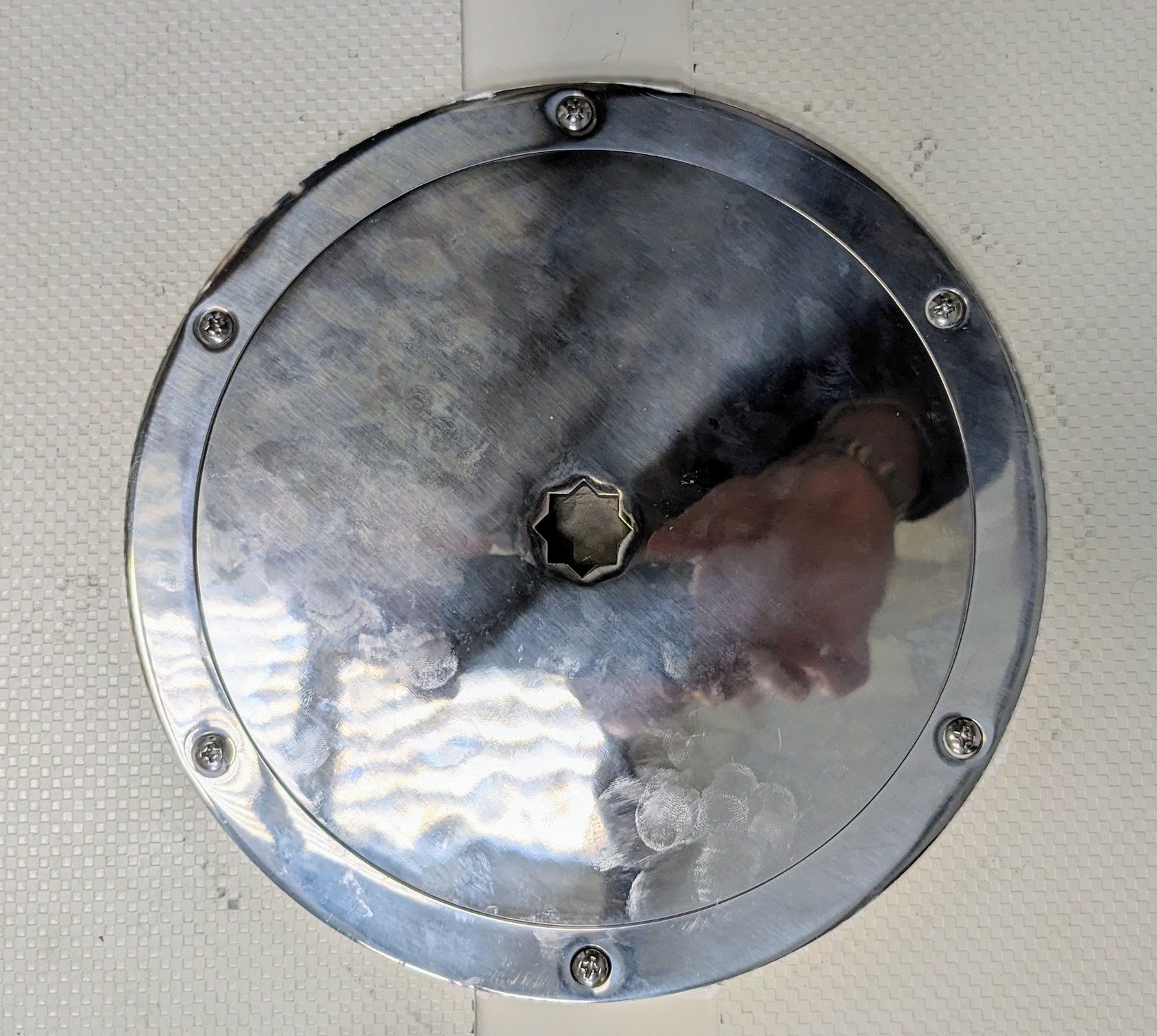 Hier kann ich gut einiges am Boot verändern und z.B. Solarpaneele, Funkgerät, einen Inspektionsdeckel für das Wellenlager im Cockpit, einen Flaggenmast und weiteres installieren.