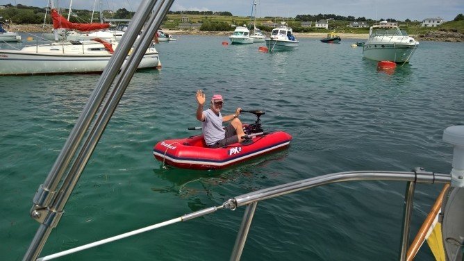 und von unserem Mooringplatz im St. Marys Pool auf den Scilly-Inseln glitten wir lautlos mit dem Schlauchboot zum Dingy-Hafen.